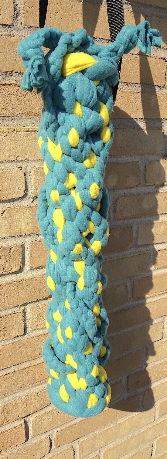 Aufgehängt ist das Spielzeug mit stabilen Nylon Bändern mit Karabinern.