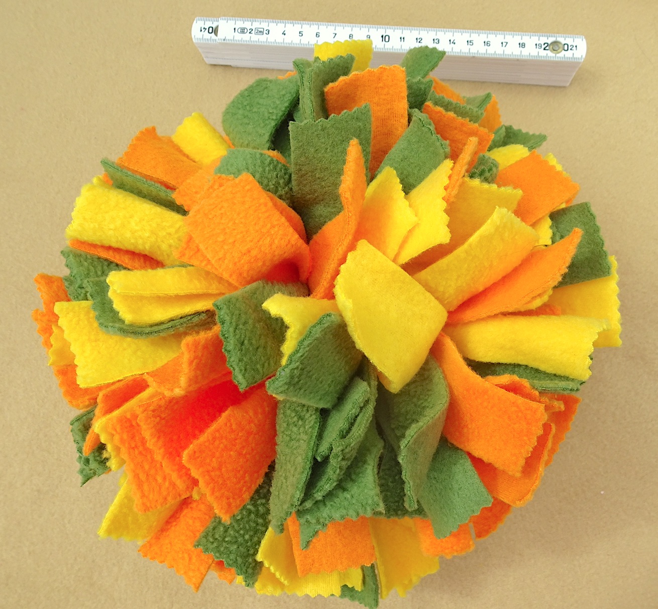 Dieser Fleece-Ball hat ca. 20-24 cm Durchmesser